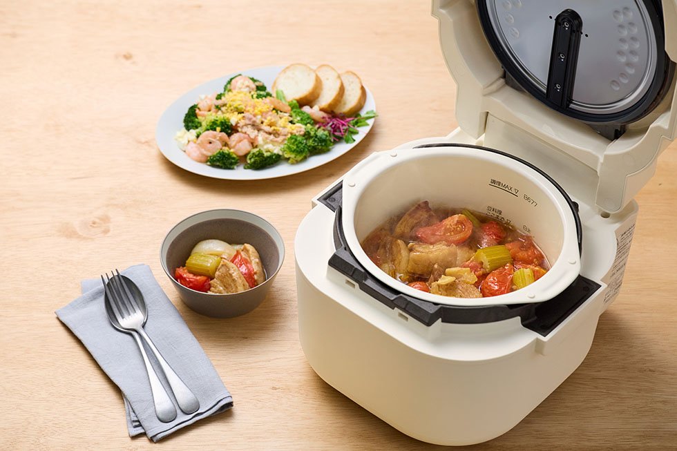 電気調理なべは材料と調味料を入れてセットしておけば※1、放っておいても自動で加熱調理してくれる便利家電。煮込み料理や蒸し料理などを作ることができ、料理の手間・時間を減らすことができます。機種によっては無水料理、低温調理、デザート作りができるものも。ガスコンロやIHクッキングヒーターで調理する場合ふきこぼれやこげつきの心配があり、火加減や中身の様子を都度確認する必要がありますが、電気調理なべは温度を自動で調整してくれます※1。また、予約機能があればセットした時間にできたての料理が召し上がれます。