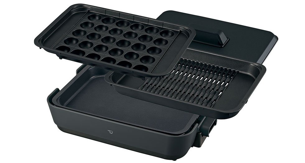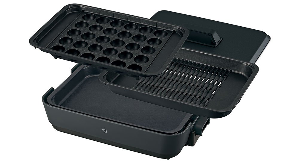 「深型穴あき焼肉プレート」「深型平面プレート」「区切り線つきたこ焼きプレート」の3種類のプレートで、さまざまなレパートリーに対応するホットプレートです。