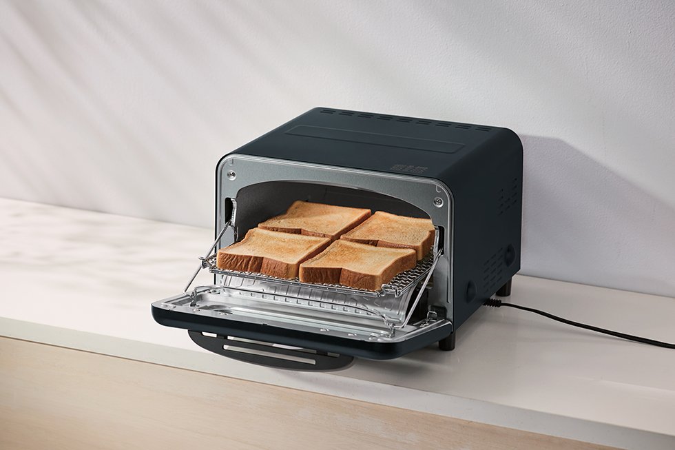 「EQ-HM30」は、熱を逃がしにくい石窯の構造からヒントを得た、「小さな形状のガラス窓」「アーチ状の開口部」「角を丸めた庫内構造」が特徴の“石窯仕立て”のオーブントースターです。庫内上部のヒーターの熱が食材に効率良く伝わる構造のため、トーストをすばやく、おいしく焼き上げられます。