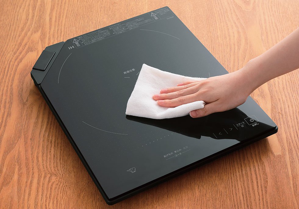 ・フルフラット構造でお手入れが簡単 凹凸が少ないため、調理後は拭き取るだけでお手入れがしやすいのもメリットです。 (製品によるため、すべての卓上IHクッキングヒーターに当てはまるわけではありません)