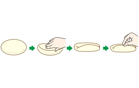 生地をめん棒で約10×15㎝のだ円形にのばす。