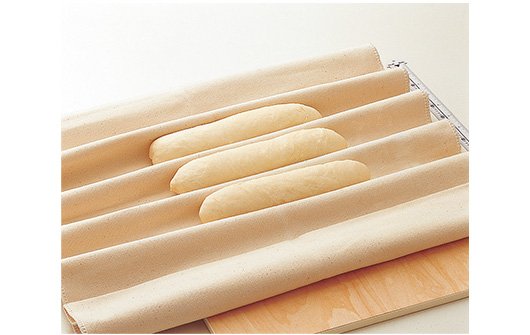 ●生地は形よく仕上げるため、キャンバス地のうねで発酵させます。