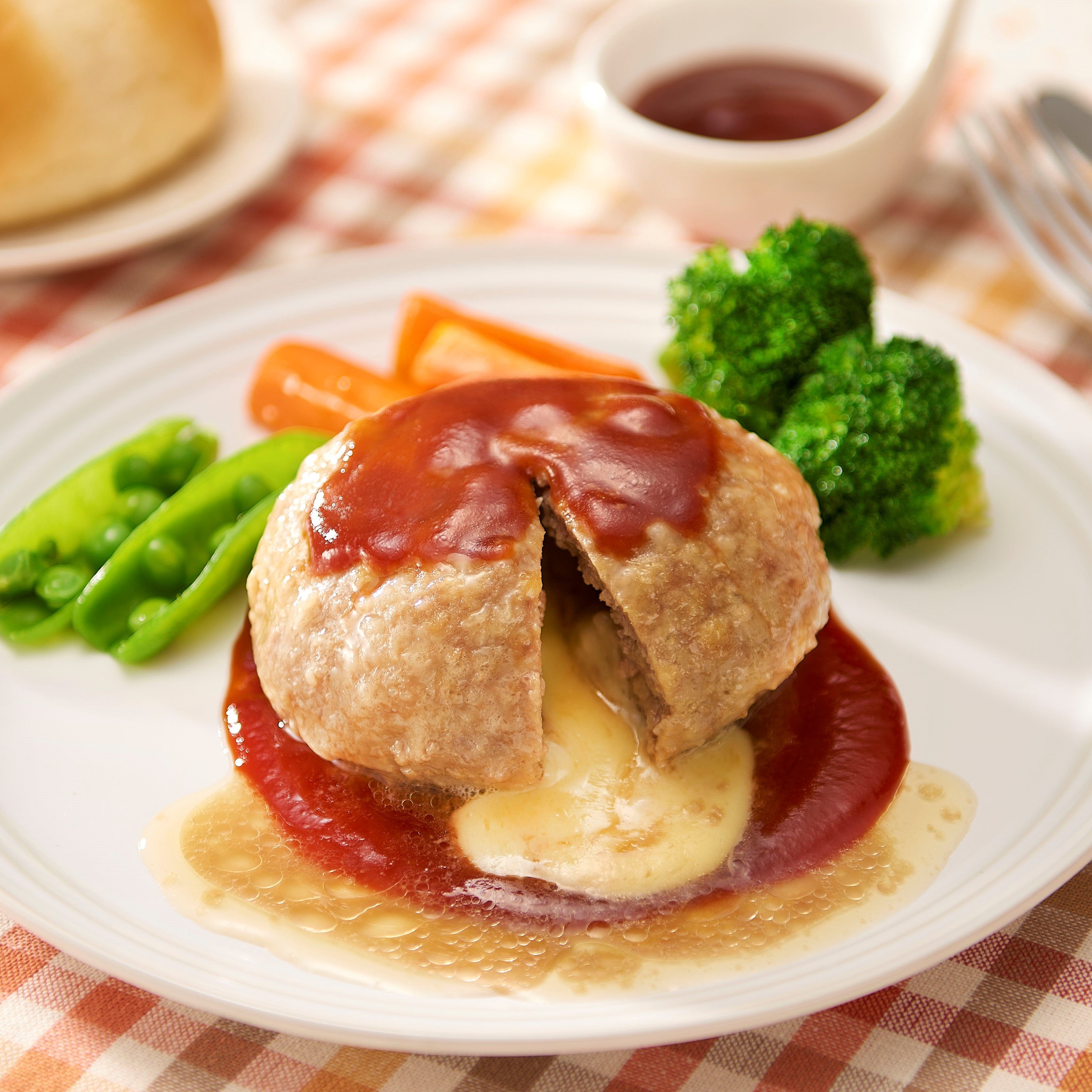 ふんわりやわらかいハンバーグからチーズがトロリと溶け出て、ソースとの相性が抜群です。