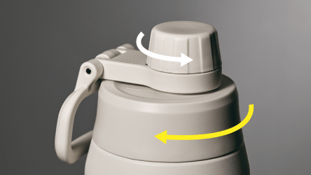少し回すとロックが解除され、手を離すと自動で開きます。閉めるときは押すだけ。少ない動作で素早く水分補給できる、新感覚のキャップです。