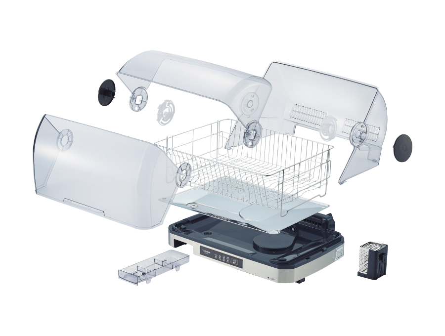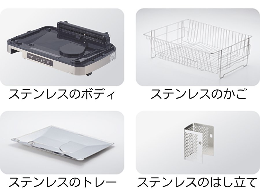 トレー・かご・はし立て・水受けはもちろんふたが分解して洗えます。(本体を除く)