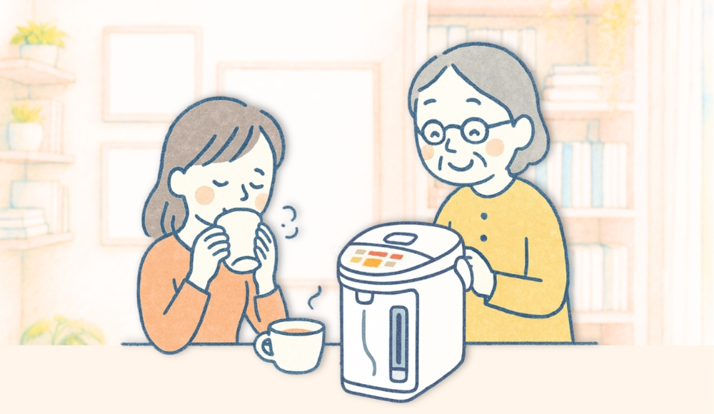 象印の「みまもりほっとライン」は、特別な操作は必要ありません。お母さんはただ、いつものようにポットでお湯を注ぐだけ。でも、その何気ない動作が、離れて暮らす家族に「今日も元気」のサインになって届きます。