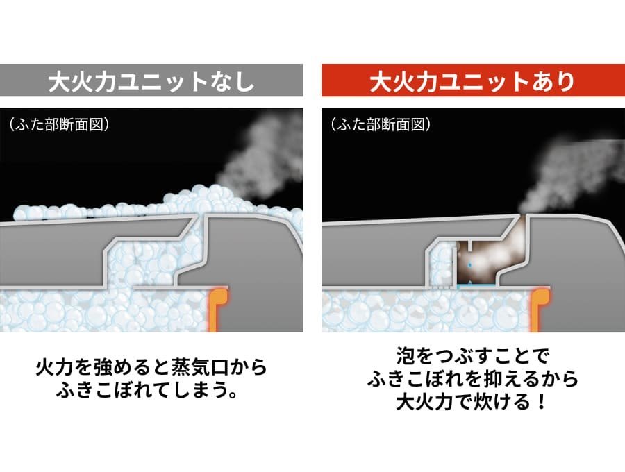 ふきこぼれを抑え、大火力を実現する「大火力ユニット」